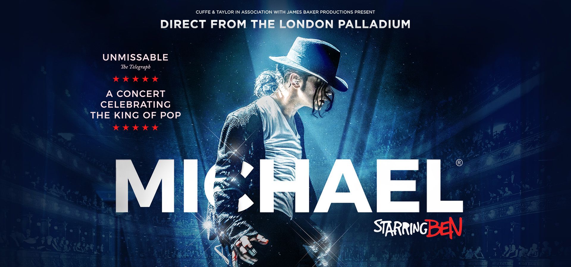 Michael Starring Ben is a hit theatre production starring the UK's ultimate Michael Jackson tribute star, Ben Bowman. Not only does Ben look and sound like the King of Pop, but he's honed his routine so carefully that audiences truly believe they are watching Michael Jackson himself.